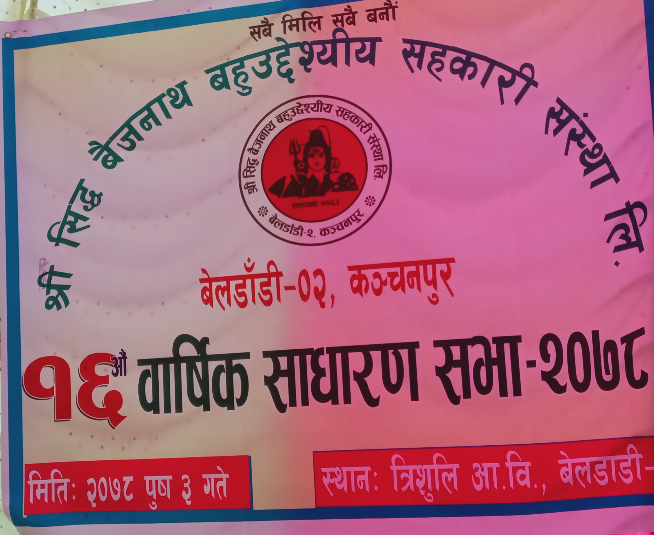 रमेश प्रसाद भट्ट/बेलडाँडी- कञ्चनपुर जिल्लाको बेलडाँडी गाउँपालिका वडा नम्बर-२ को श्री सिद्ध बैजनाथ बहुउेश्यीय सहकारी संस्था लिमिटेडको १६ औ बार्षिक साधारण सभा सम्पन्न भएको छ । शनिबार एक कार्यक्रमका गरी बेलडाँडीको चवन्नी बजारमा स्थित आफ्नै कार्यालयमा साधारण सभा कार्यक्रम सम्पन्न गरेको हो ।