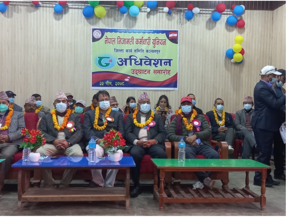 कञ्चनपुर – नेपाल निजामती कर्मचारी युनियन जिल्ला कार्य समिति कञ्चनपुरको (आठौं) जिल्ला अधिवेशन सम्पन्न भएको छ । शुक्रबार कञ्चनपुरको महेन्द्रनगरमा सुरु भएको जिल्ला अधिबेशनमा प्रेम सिंह ऐरलाई सर्वसम्मतले अध्यक्षमा चयन गरेको हो ।