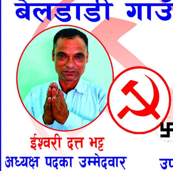 रमेश प्रसाद भट्ट/कञ्चनपुर- स्थानीय तहको निर्वाचनमा माओवादी केन्द्र र ने.क.पा.एकीकृत समाजवादीका तर्फबाट बेलडाँडी गाउँपालिका अध्यक्ष पदका उम्मेदवार ईश्वरी दत्त भट्टले ५० युनिट विजुली फ्रि, पालिका स्तरमा सुविधा सम्पन्न अस्पताल देखि गाउँमै रोजगारी दिउने संकल्प गरेका छन् ।