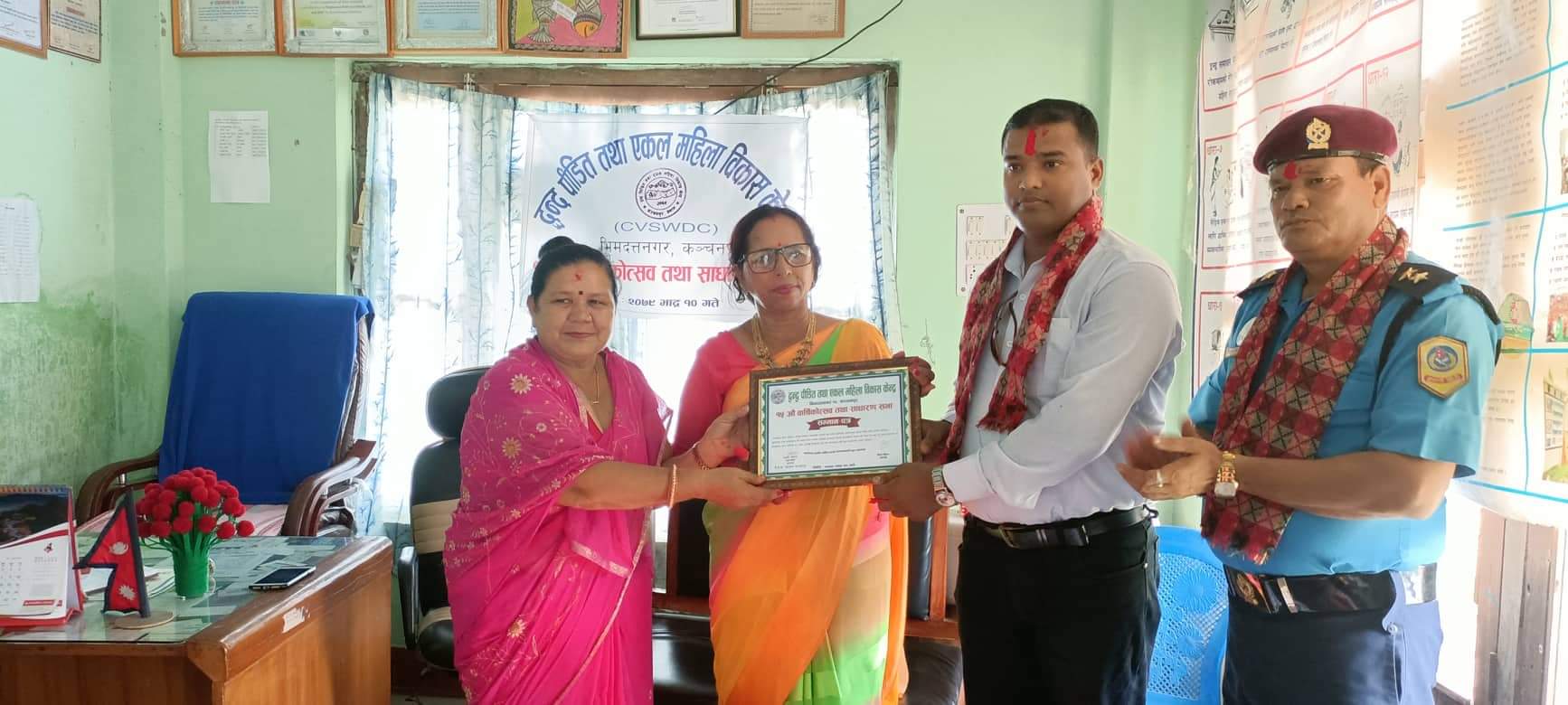 शुक्रबार संस्थाको कार्यालय महेन्द्रनगरमा आयोजित कार्यक्रममा पत्रकार भट्टलाई संञ्चार क्षेत्रबाट एकल महिलाको हक अधिकारका क्षेत्रमा कलम चलाएकाले उहाँको उच्च मुल्यांकन गदै प्रमाण पत्र सहित दोसल्ला ओढाएर संस्थाको १५ बार्षिक साधारण सभामा सम्मानीत गरेको द्धन्द पिडित तथा एकल महिला विकास केन्दका अध्यक्ष सिता बोहराले बताउनु भयो ।