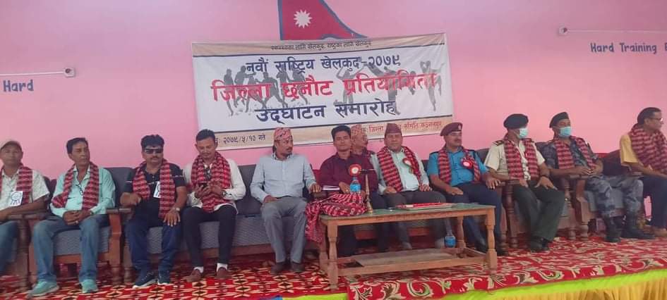 गण्डकी प्रदेशको पोखरामा राष्ट्रिय खेलकुद परिषदको आयोजनामा असोज २८ देखी कार्तिक ३ गते सम्म ९ औं राष्ट्रिय खेलकुद २०७९ संचालन हुने खेलकुदमा कञ्चनपुर जिल्ला छनोट प्रतियोगिता शुक्रबार एक कार्यक्रमका साथ उदघाटन भएको हो।