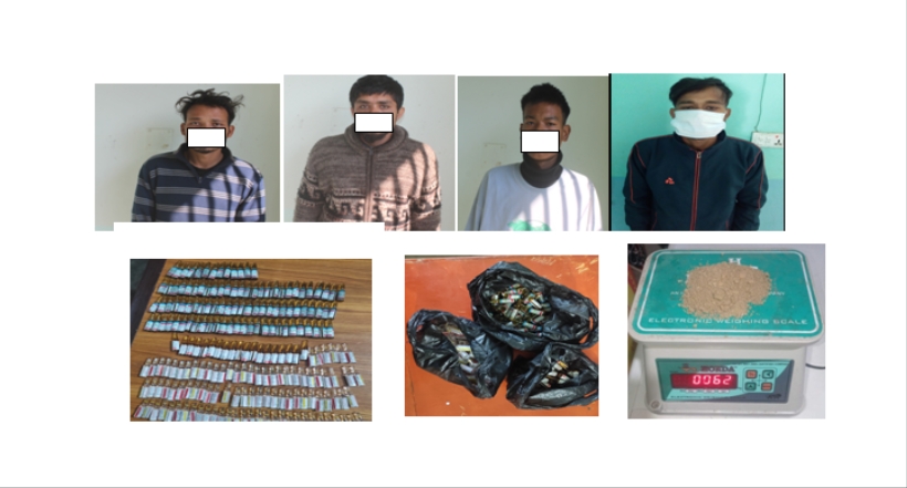 जिल्लाका छुट्टाछुट्टै स्थानबाट लागु औषध सहित चार जना युवक पक्राउ