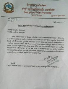 कार्यपालिका बैठकले गरेको निर्णय बारे सम्बन्धीत विद्यालयलाई जानकारी गराउन सार्वजनिक सुचना जारी गरिएको बेलडाँडी गाँउपालिका प्रमुख हरिशचन्द्र रानाका स्वकीय सचिव कुलैराज उपाध्यायले बताए ।