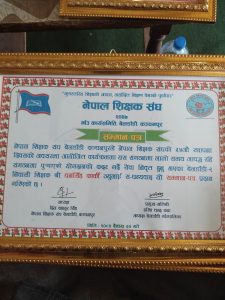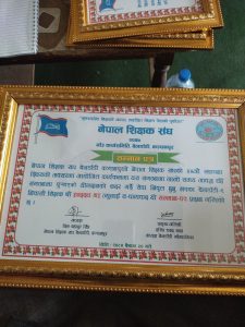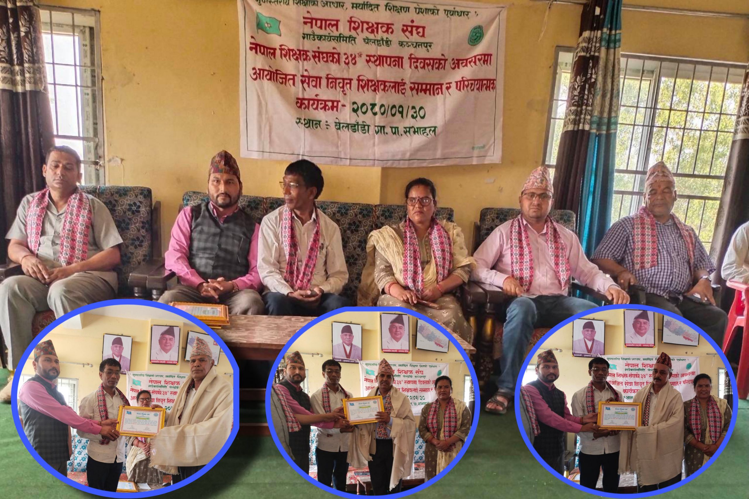रमेश प्रसाद भट्ट/कञ्चनपुर- नेपाल शिक्षक संघकाे ३४ औ स्थापना दिवसकाे अवसरमा शिक्षक संघ बेलडाँडीले भव्य रूपमा दिवस मनाएकाे छ । दिवसकाे अवसरमा बेलडाँडी गाउँपालिकाका सेवा निवृत ३ जना पुर्व प्रअ सम्मानित भएका छन् ।
