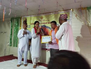 मंगलबार एक कार्यक्रमका विच पत्रकार केसीलाई पतंजली योग समिति कञ्चनपुरका अध्यक्ष दयाकृष्ण जोशी सहितका योगगुरुहरुले प्रमाण पत्रका साथै दोसल्ला ओढाएर सम्मान गरेको छ ।