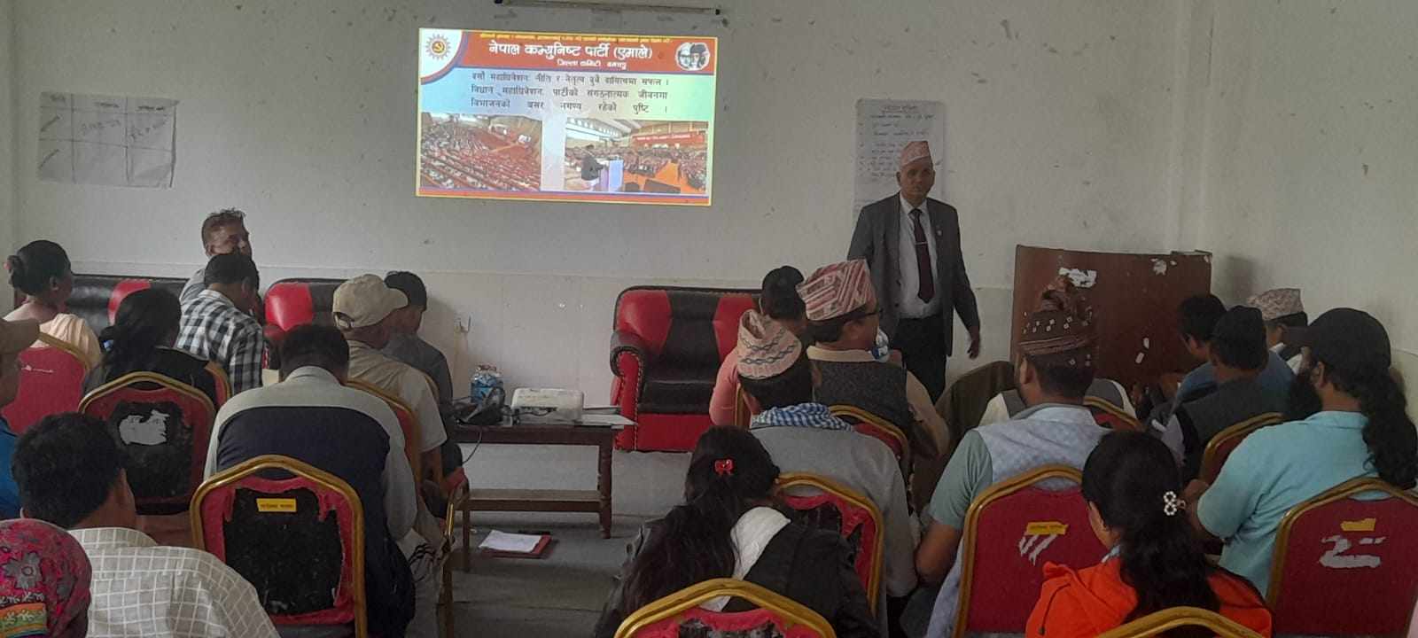प्रमुख अतिथि रावल, केन्द्रीय सदस्य अफिलाल ओखेडा, केन्द्रीय सल्लाहकार परिषदका सदस्य कलक खड्का, प्रदेश कमिटीका सचिवालय सदस्यद्धय दिल बहादुर भण्डारी र जनकराज जोशी, जिल्ला कमिटी सचिव आनन्दलाल विक, उपसचिव भागिरथी सिंह, जयपृथ्वी नगरपालिकाका पूर्व मेयर तथा जिल्ला कमिटी सदस्य बिरेन्द्र खड्कालगायतले विभिन्न विषयमा सहभागीहरुलाई प्रशिक्षित गरेको जिल्ला कमिटी सदस्य लोकेन्द्र बोहराले जानकारी दिए ।