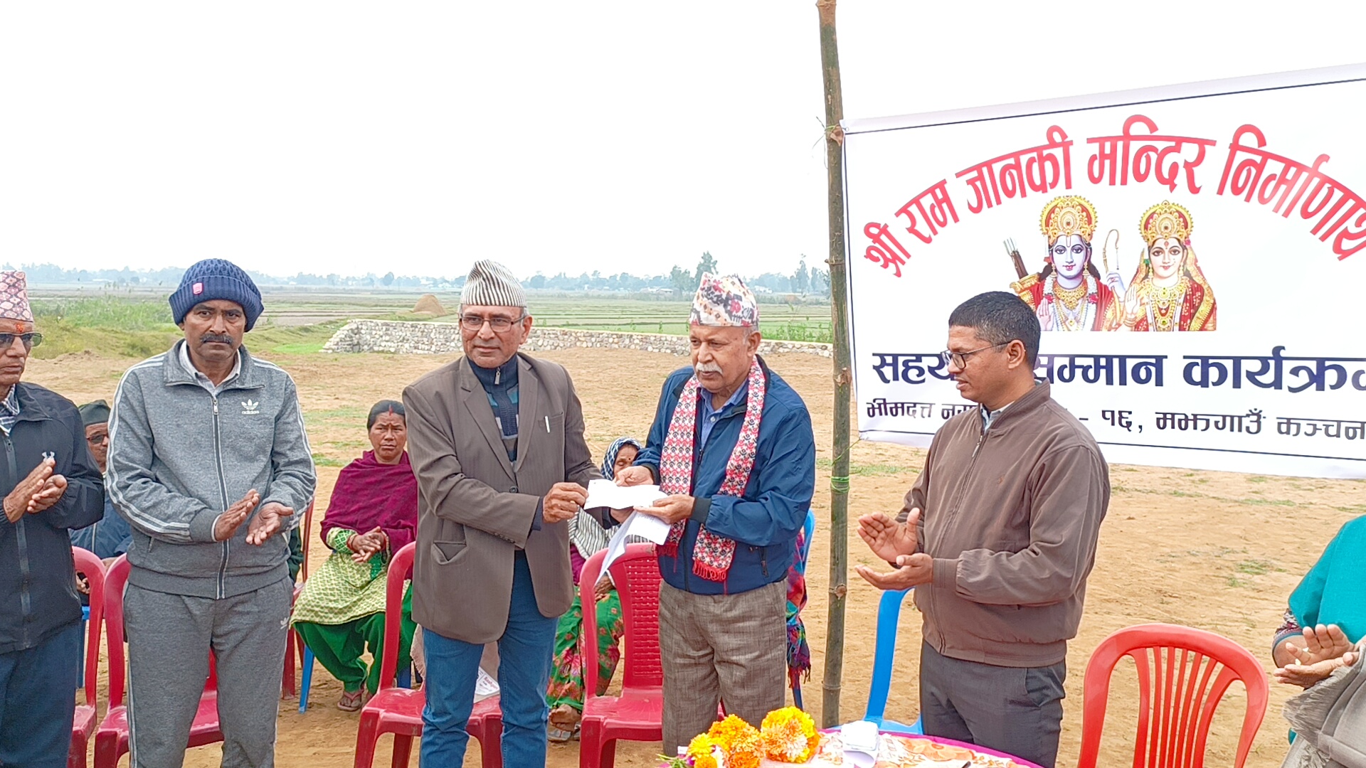 कार्यक्रममा मन्दिर निर्माणका लागि विदेशबाट सहयोग संकलन गरेका समाजसेवी पुष्कर बहादुर सिह र आर्थिक सहयोगीदाता मिता महरलाई सम्मान गरिएको छ । राम जानकी मन्दिर निर्माण स्थलको पश्चिम तर्फ तटबन्ध(पर्खाल) समेत निर्माण गरिएको थियो ।