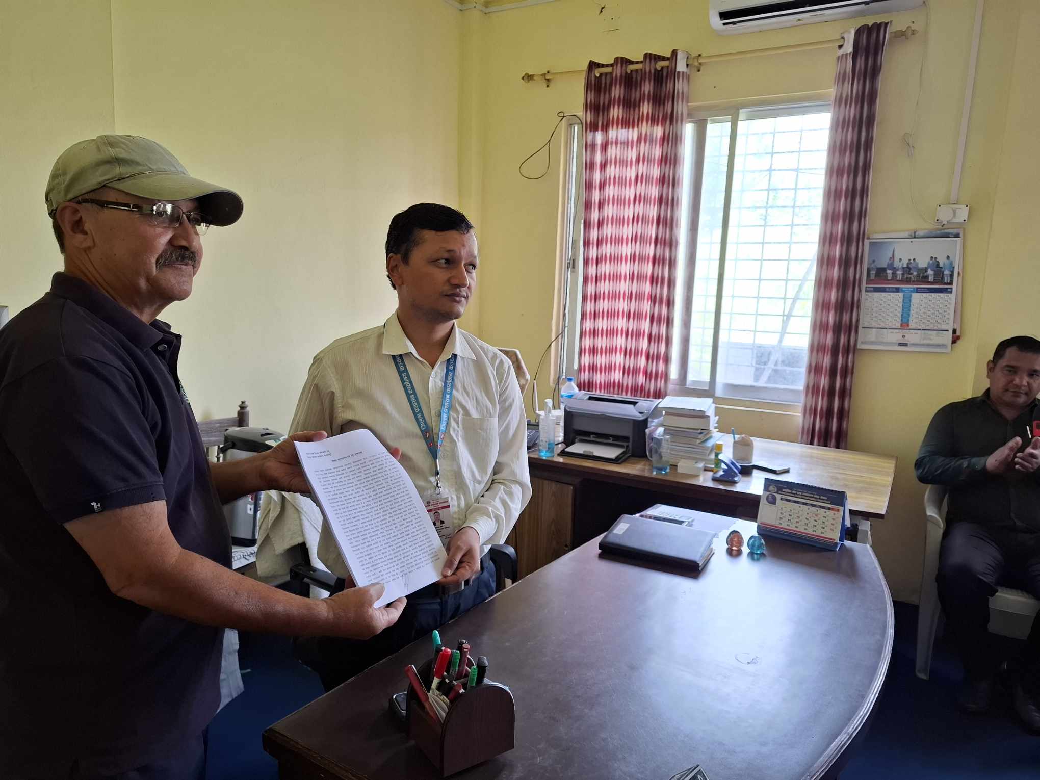 विमानस्थलकाे निर्माणाधीन अवस्थामा रहेकाे धावन मार्गकाे काममा शुक्लाफाँटा राष्ट्रिय निकुञ्जले अवराेध गरेपछि कञ्चनपुरका सहायक प्रजिअ धर्मराज जाेशीलाई भेटेर संघर्ष समितिले ध्यानाकर्षण पत्र दिएकाे संघर्ष समितिका संचार संयाेजक ज्ञानेन्द्र सिंह महताले बताउनु भयाे ।