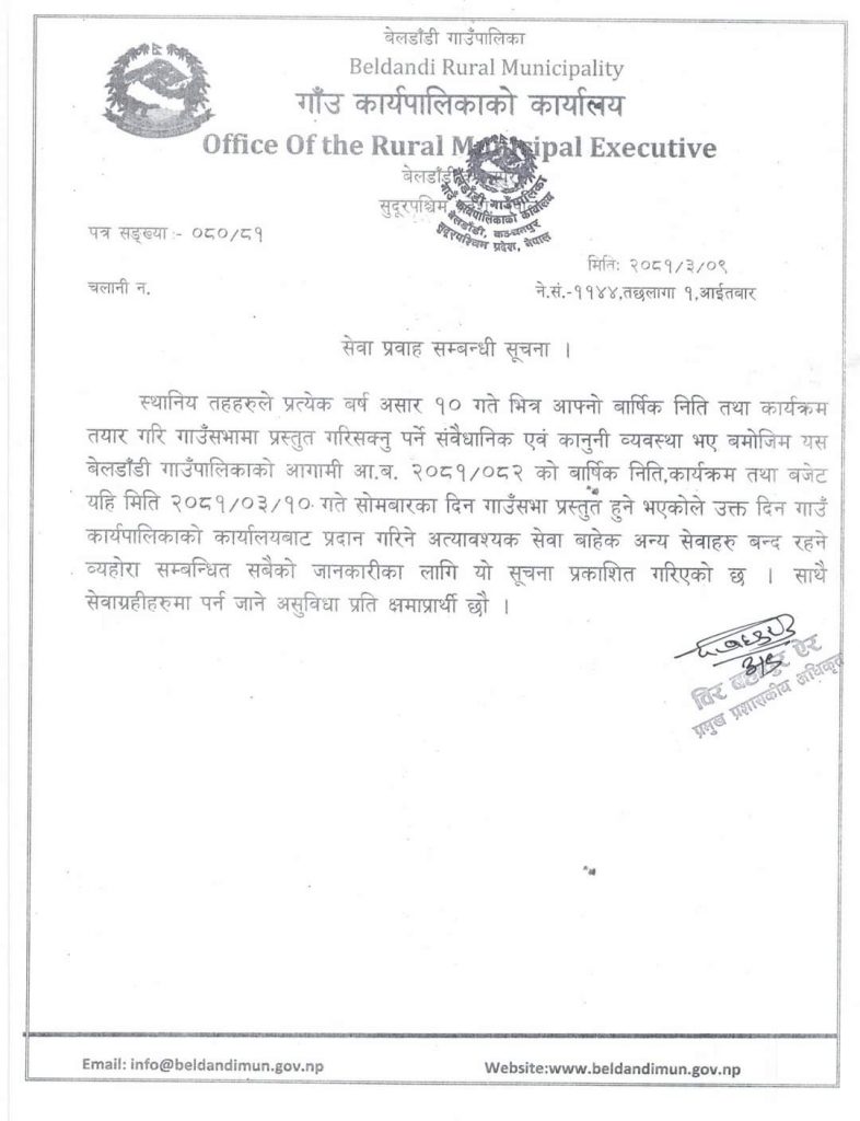 सुदूरपश्चिम र कर्णाली प्रदेशका थोरै ठाउँमा मेघ गर्जन र चट्याङसहित हल्कादेखि मध्यम वर्षाको सम्भावना रहेको मौसम पूर्वानुमान महाशाखाले जनाएको छ । हिजाे सुदूरपश्चिमका धेरै जिल्लामा पानी परेकाे थियाे ।