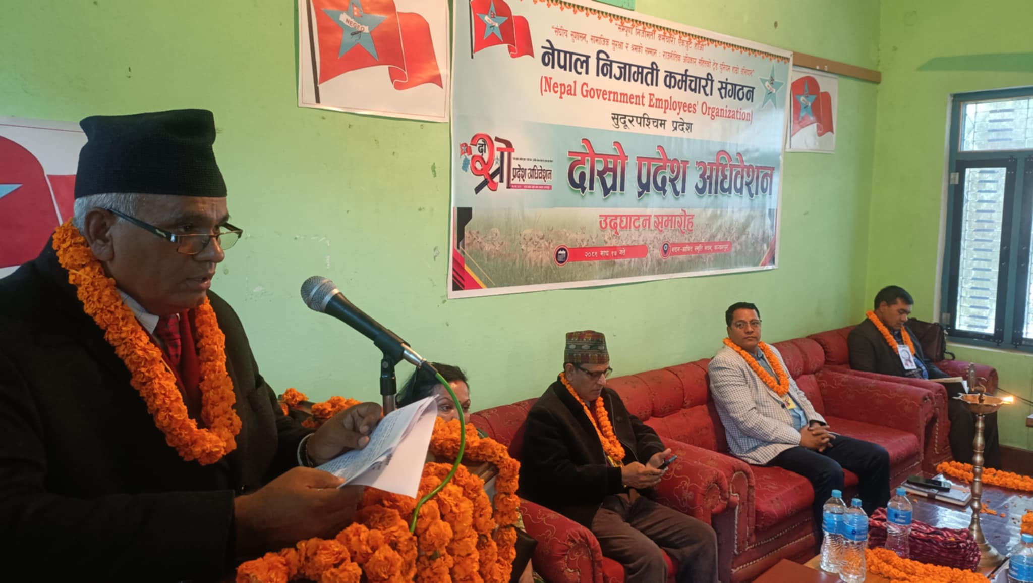नेपाल निजामती कर्मचारी संगठन सुदूरपश्चिम प्रदेशका महासचिव महादेव जोशीले दोस्रो अधिवेशनको शुरुवात भएको बताए । महासचिव जोशीका अनुसार एमाले कञ्चनपुर पाटी कार्यालयको माथिल्लो तला मदन आश्रित हलमा संगठनका केन्द्रीय अध्यक्ष लेखनाथ कोईरालाको प्रमुख आथित्य एव एमाले पोलिट्ब्यूरो सदस्य समेत रहेका पुर्वमुख्यमन्त्री राजेन्द्र सिह रावल प्रमुख वक्ता सहितको उपस्थितिमा अधिवेशन शुरु भएको बताए ।