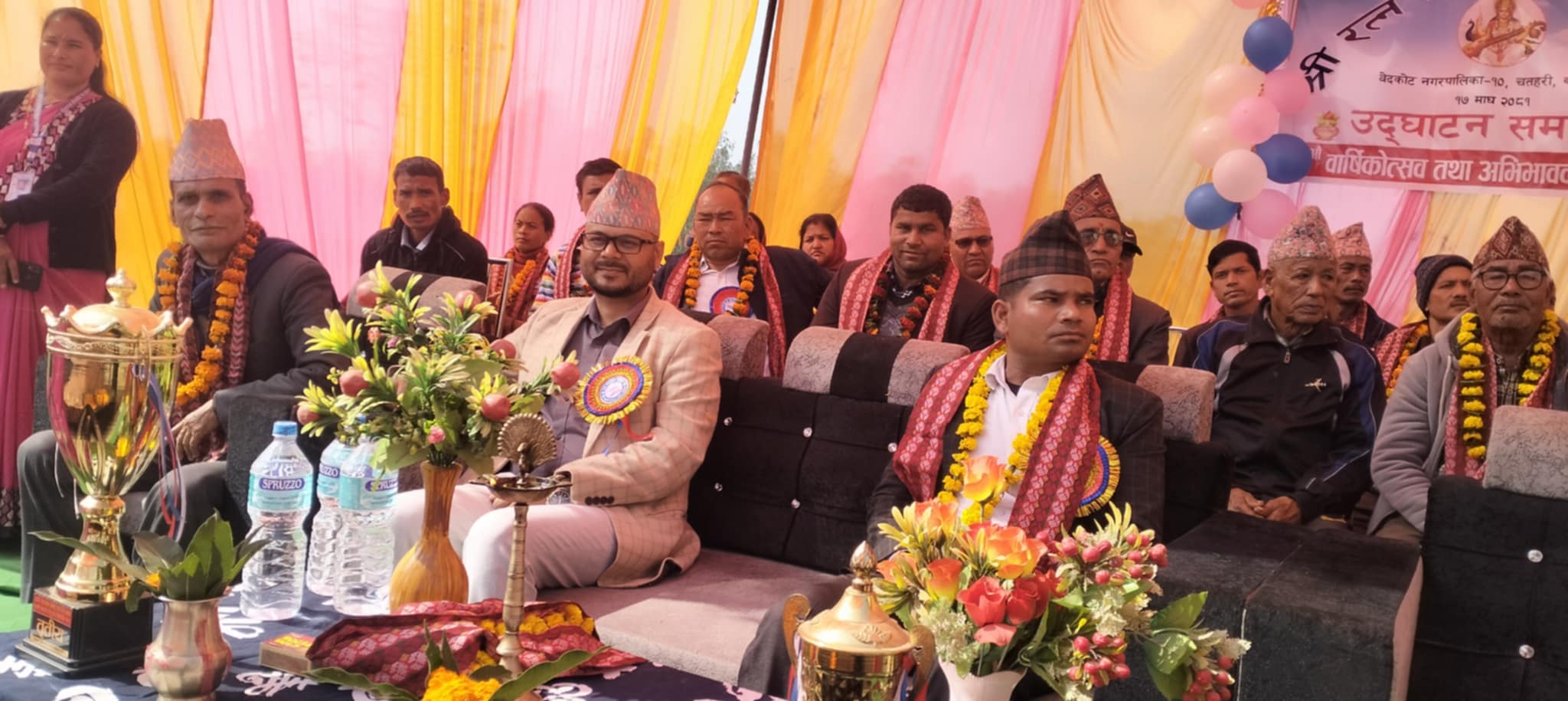 कार्यक्रमका बिशिष्ठ अथिति बेदकोट नगरपालिका १० का वडाध्यक्ष रतन सिह विष्टले वडाबाट विद्यालयको शैक्षर््िाक भौतिक बृद्धि विकासमा जोडदिएका छन । विद्यालयका पुर्व अध्यक्ष समेत रहेका माओवादी कञ्चनपुरका युवा नेता कैलास सुनारले पनि विद्यालयको बृद्धि विकासका लागि आफुले विगतकै जस्तै सहयोग गर्ने बताए । यस्तै कार्यक्रममा पुर्व पिटिएर अध्यक्ष जय ब. रोकायाले विद्यालयमा सरकारवादी पाटीले अनावश्यक राजनीतिक गरेको दुखेसो पोखेका छन ।
