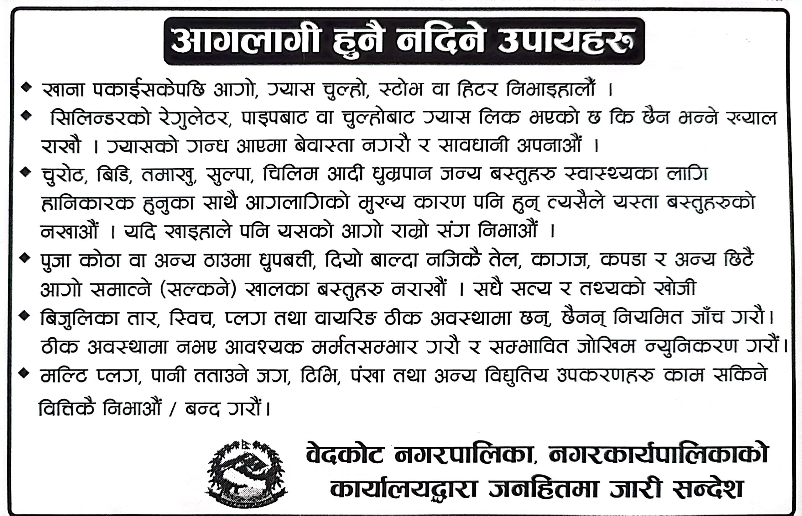 वेदकोट नगरपालिकाले विगतका गौरवका योजनाहरूलाई निरन्तरता दिँदै नयाँ कार्यक्रमहरू पनि समावेश गरेको छ।